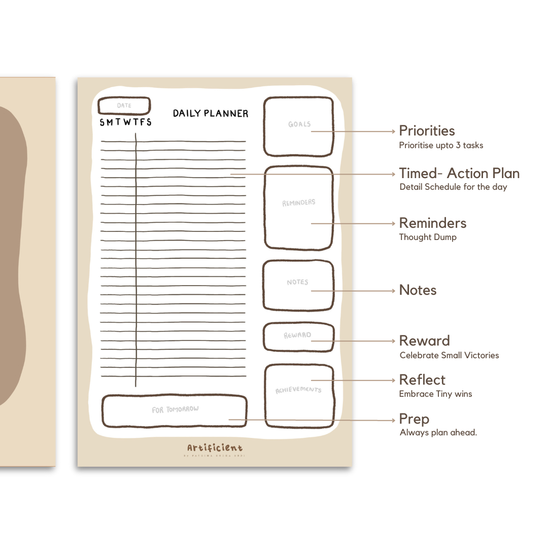 Discover the perfect fusion of aesthetics and functionality in this planner.💪 Let your creativity and productivity flourish with its captivating prints and colours, thoughtfully designed spreads, and gender-neutral appeal. This gem from Artificient is your key to all-day effectiveness.💎