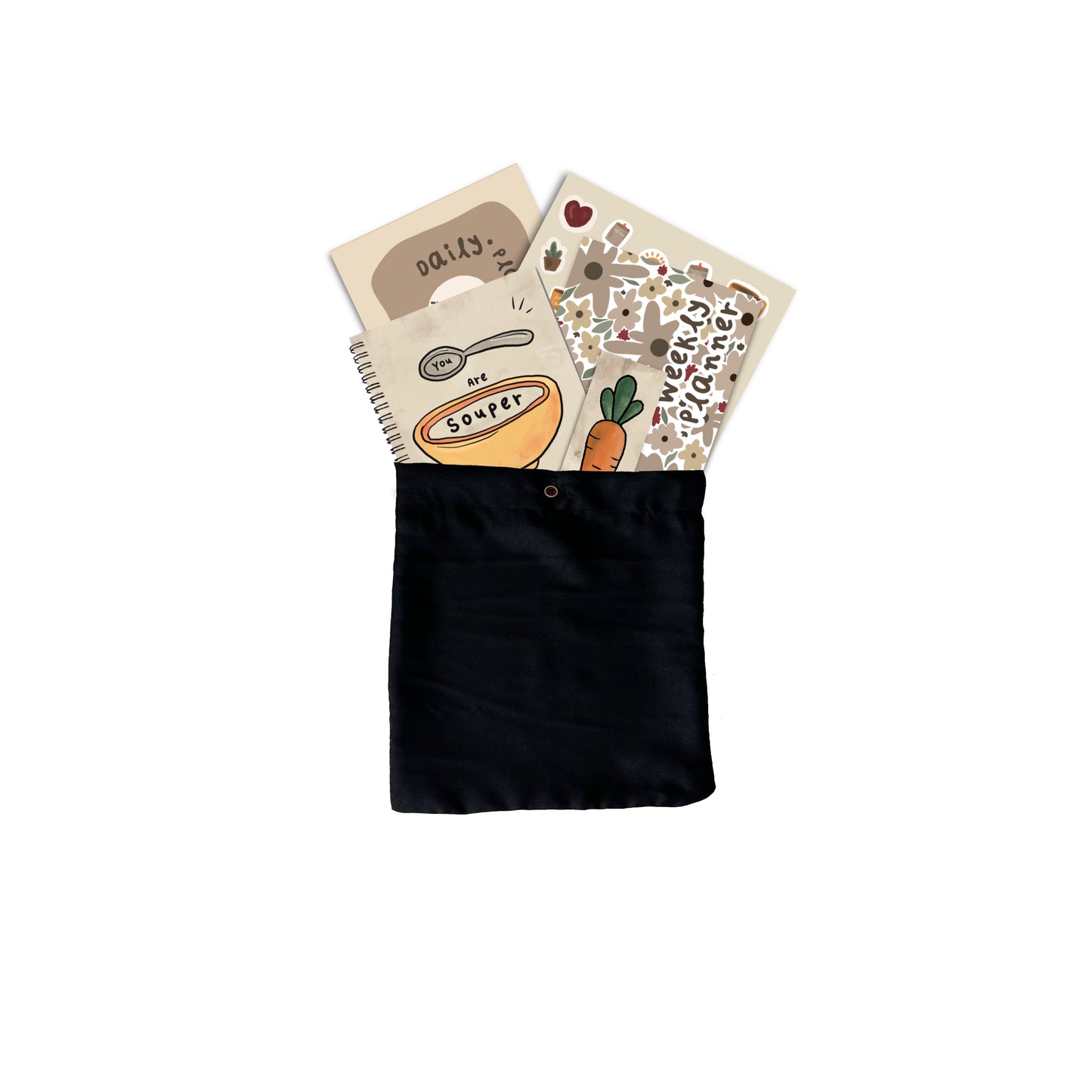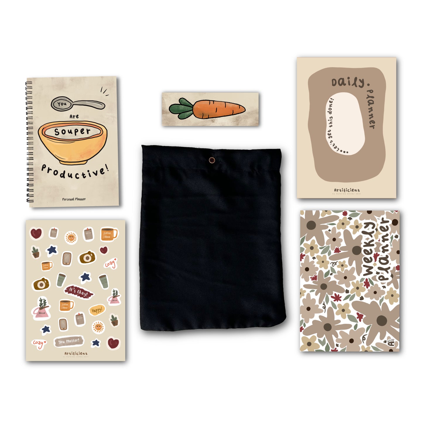 This thoughtfully curated set comprises an Annual Planner, a Weekly Planner, and a Daily Planner along with a sticker set and a bookmark, all elegantly bundled in a complimentary pouch.
