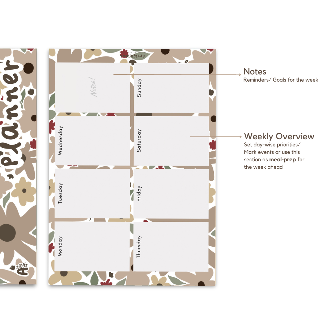 Tearable: Our Tearables collection liberates you from the hassle of lugging around a bulky planner. Tear off each page and conveniently carry your stylish planner spreads in your pocket. Using it for meal prep? Simply tear them and let them enhance your refrigerator's aesthetics.